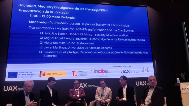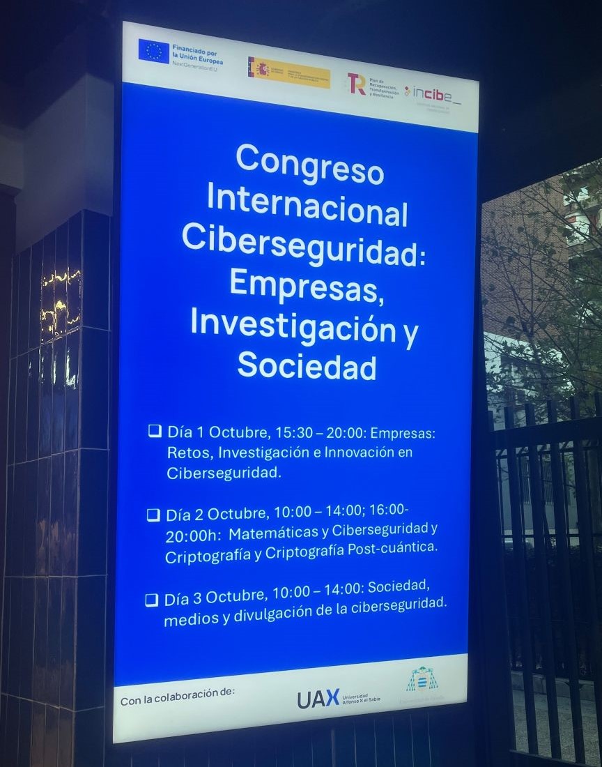 Last week we took part in the International Cybersecurity Congress organized by Universidad Alfonso X el Sabio and Universidad de Oviedo, with the support of INCIBE. Three intense days with international experts in mathematics, cryptography, and education, where our colleague Alejandro Mier González contributed our ethical and humanistic perspective on defense and cybersecurity.