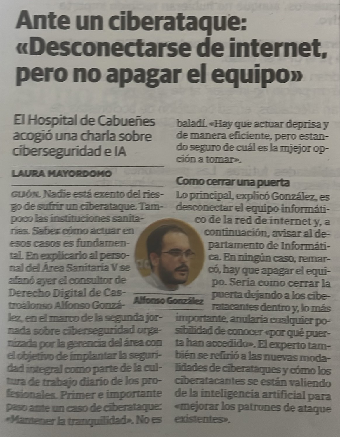 At Castroalonso, we have delivered cybersecurity training to the University Hospital of Cabueñes in Gijón, with the aim of enhancing staff awareness and skills in digital security and digital health, as well as promoting compliance with current regulations.